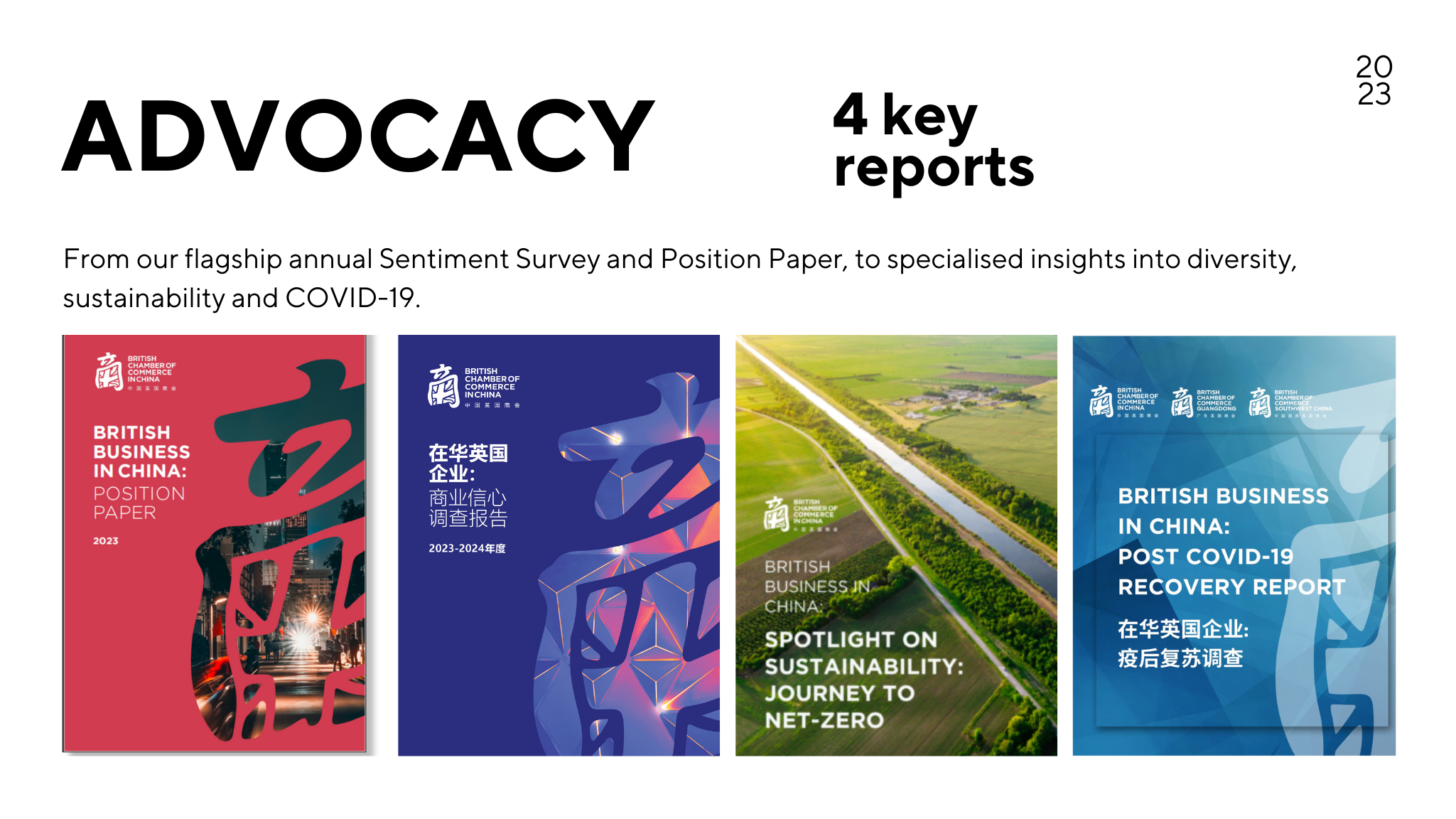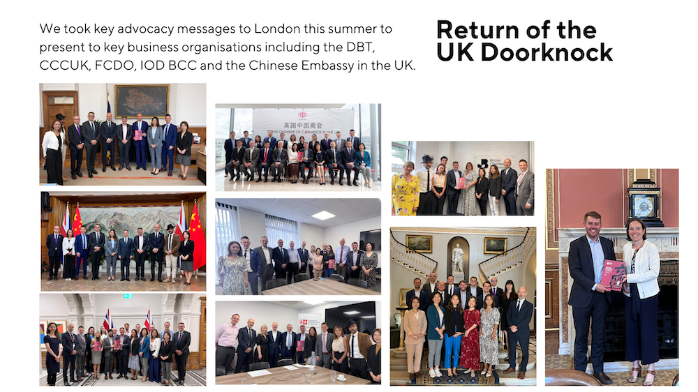 In 2023, our advocacy efforts reached unprecedented heights, defining it as a significant year for the British Chamber. Engaging on both the China and UK fronts, we solidified our position as the authentic independent voice for our members. The impact of our advocacy was eloquently demonstrated through our flagship reports—the Position Paper and Business Sentiment Survey —where the collective strength of our voice resonated with governments, media and businesses. Furthermore, our regional ties flourished as we forged robust connections with BritCham Southwest and Guangdong. Noteworthy was the revival of our “UK Doorknock” in June, providing a valuable opportunity to interface with members of Parliament and the Department for Business and Trade (DBT) back home. This engagement proved instrumental in comprehending the prevailing business sentiment in China, reinforcing our commitment to representing our members effectively.